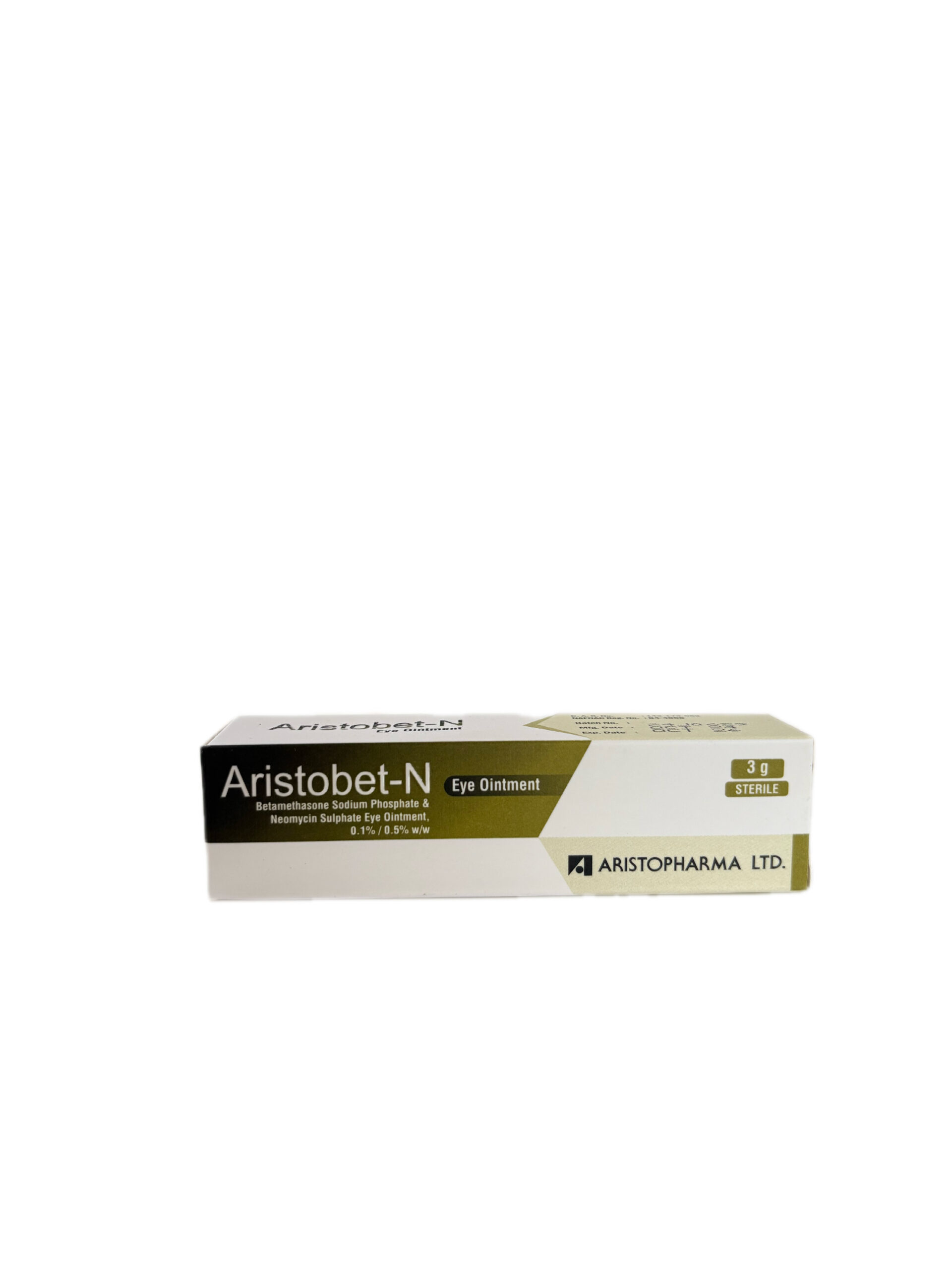 Aristobet-N Eye Ointment is a prescription ophthalmic medication that contains betamethasone sodium phosphate (0.1%), a corticosteroid that reduces inflammation, and neomycin sulphate (0.5%), a broad-spectrum antibiotic that fights bacterial infections. It is used for inflammatory eye conditions where bacterial infection is present or likely.