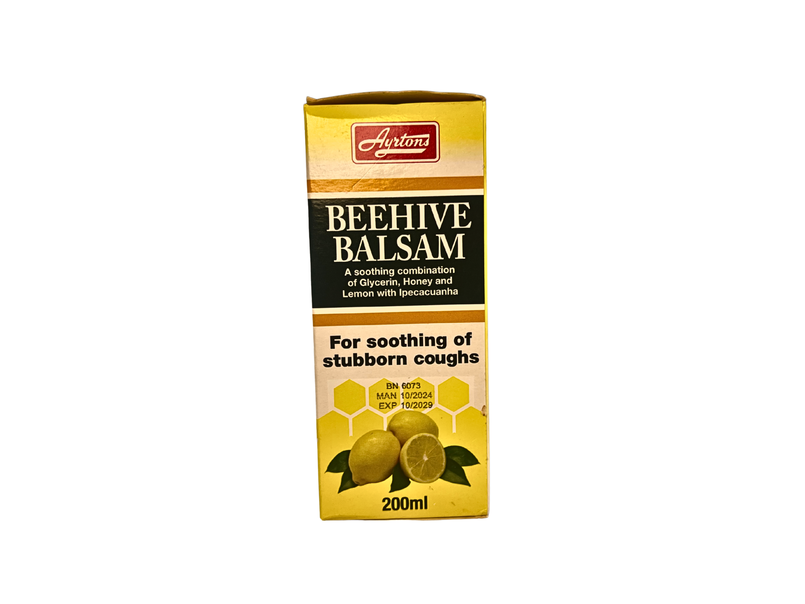Ayrtons Beehive Balsam is an oral liquid remedy specifically formulated for the management of respiratory discomfort. It features a unique blend of medicinal and natural active ingredients, including Glycerin, Honey, Lemon, and Ipecacuanha. This time-tested syrup is a trusted choice for families seeking a warming, comforting treatment for seasonal ailments and persistent respiratory issues.