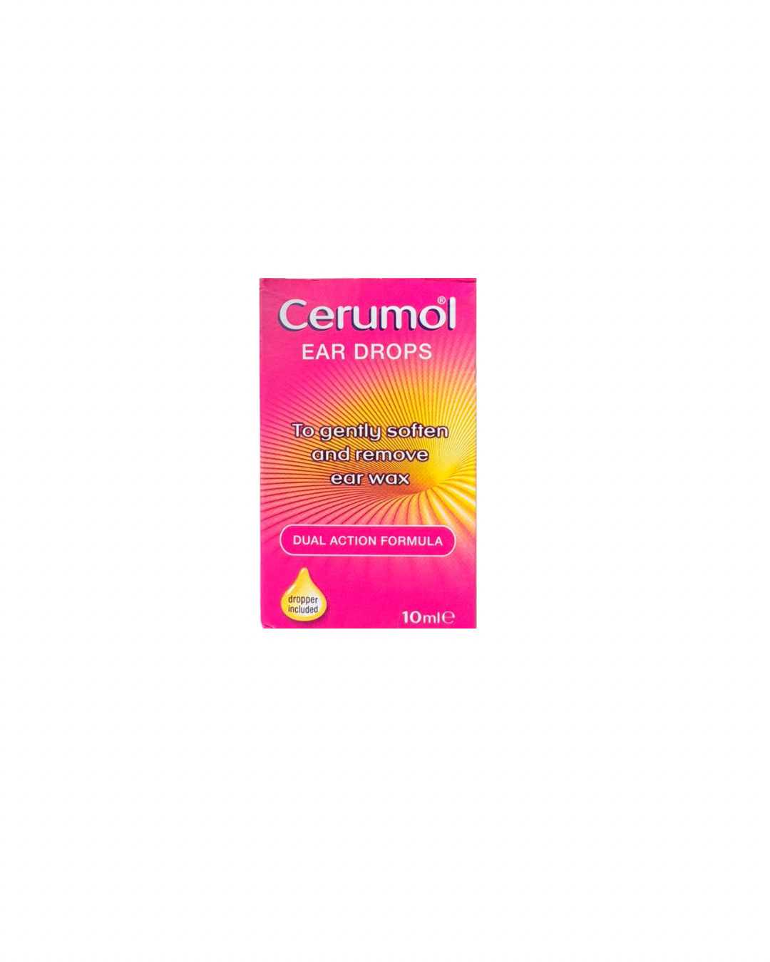 Cerumol is an ear drop used to soften and remove earwax. It contains agents like arachis oil (peanut oil) and other compounds that help break down hardened wax in the ear canal.