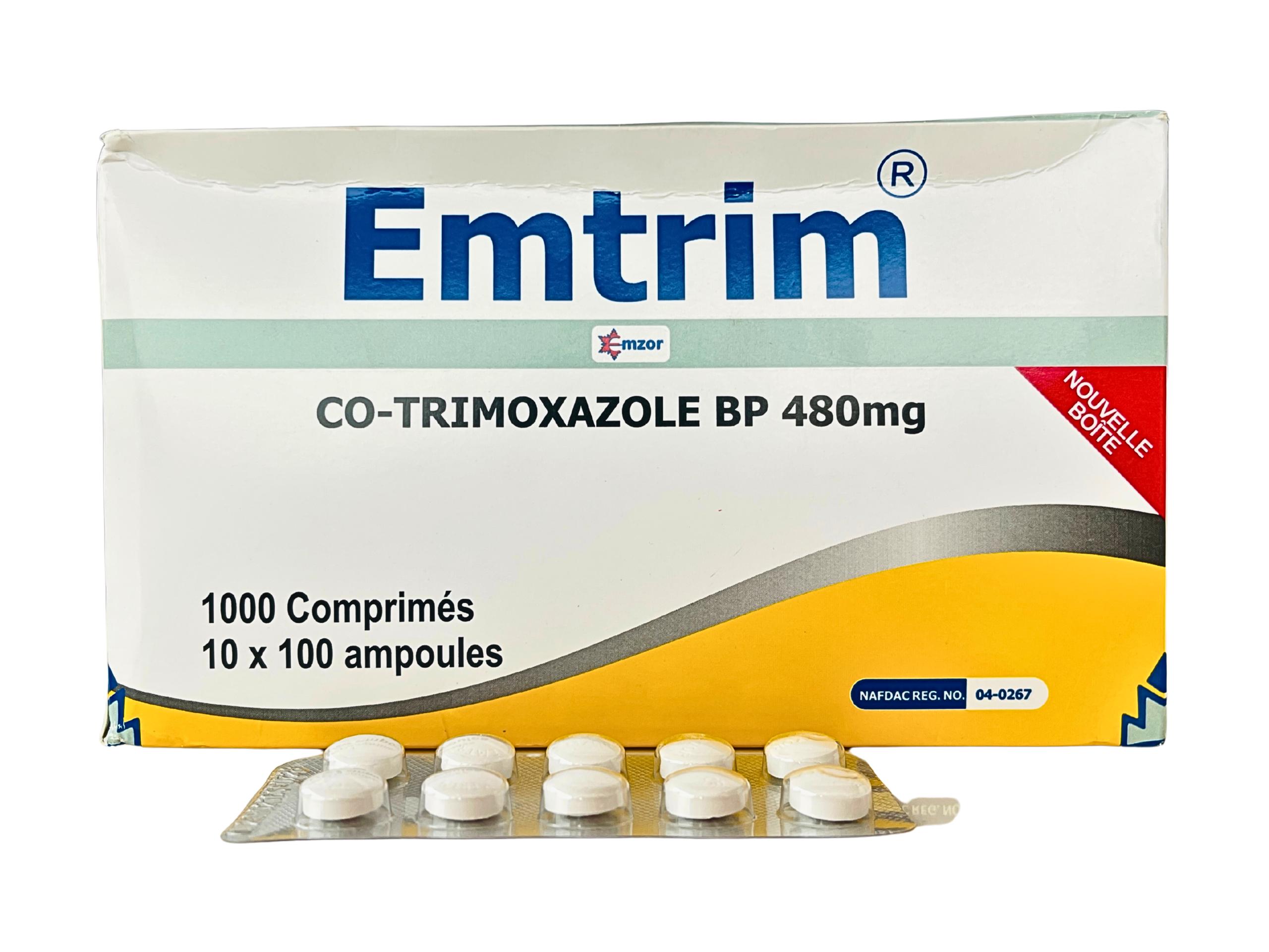 Emtrim is an oral medication containing the active ingredient Co-trimoxazole (480 mg). It is a combination of two antibiotics, sulfamethoxazole and trimethoprim. It belongs to a class of drugs known as sulfonamides and folate antagonists. It is primarily used to treat a wide variety of bacterial infections, including those of the urinary tract, respiratory system, and intestines.