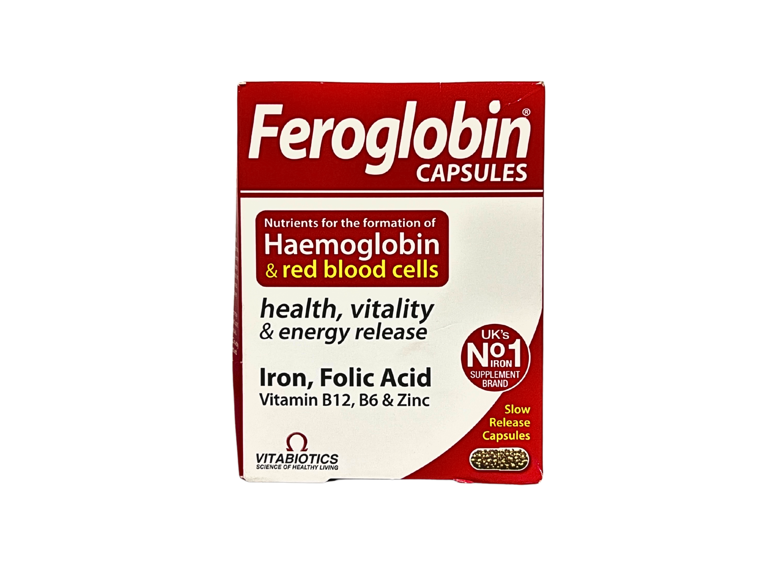 Feroglobin CAPSULES is a specialized dietary supplement specifically formulated to support the formation of haemoglobin and red blood cells. It is designed as a gentle iron supplement, combining essential vitamins and minerals to promote health, vitality, and energy release.