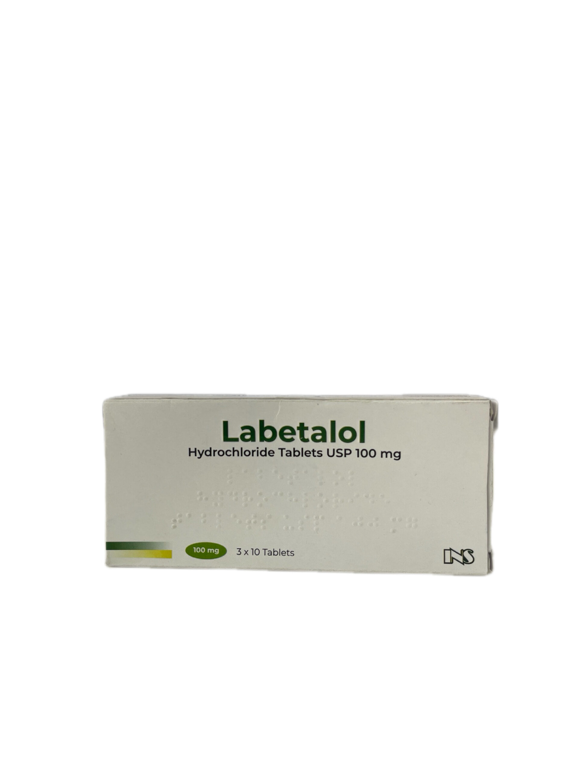 Labetalol Hydrochloride 100 mg is an antihypertensive medication used to treat high blood pressure (hypertension). It works by blocking certain receptors in the heart and blood vessels, helping to slow the heart rate and relax blood vessels, which lowers blood pressure.