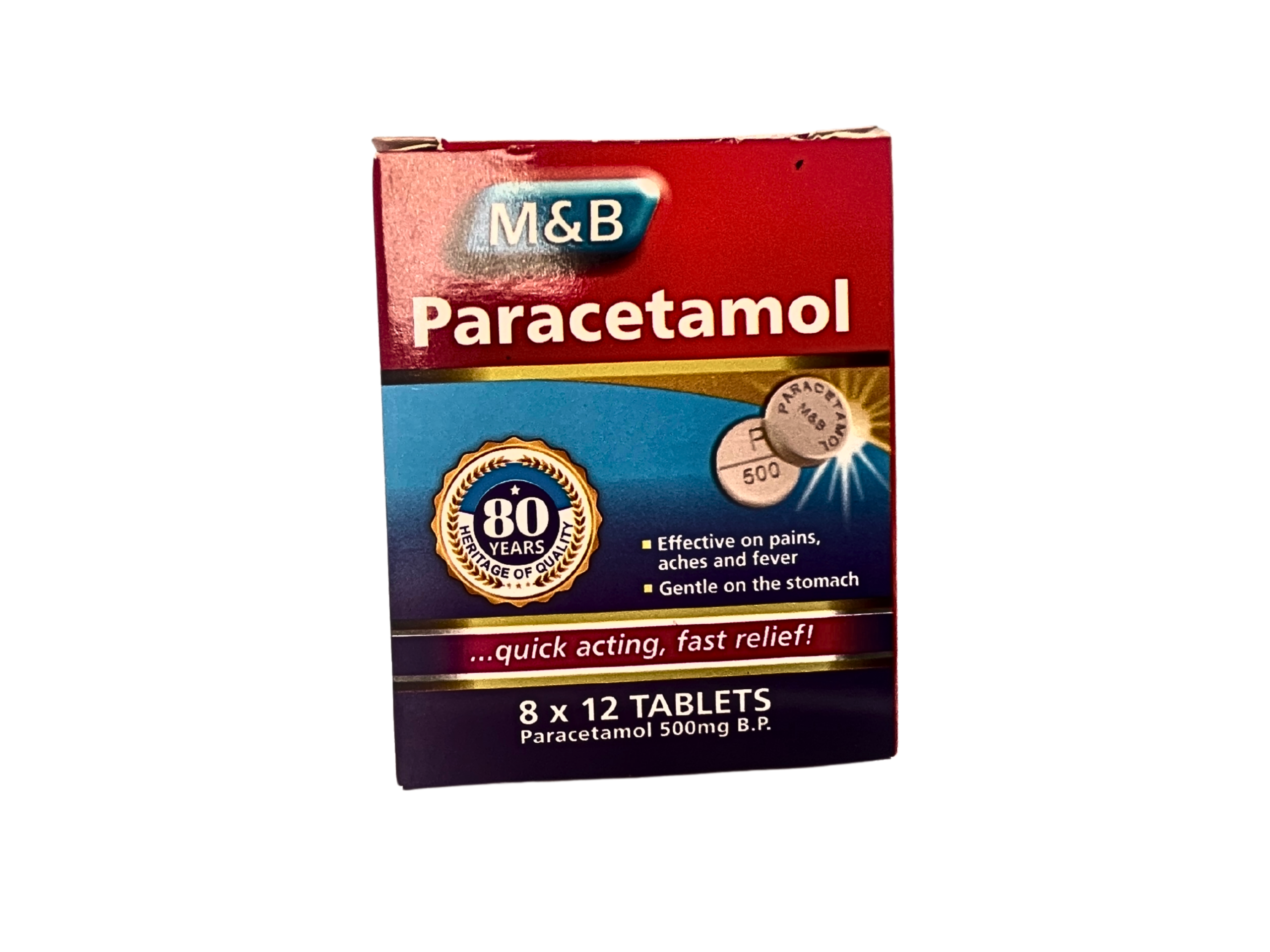 M&B Paracetamol is an oral analgesic and antipyretic medication containing Paracetamol (500mg B.P.) per tablet. Backed by an 80-year heritage of quality, it is a trusted solution for the management of mild to moderate physical discomfort and elevated body temperature.