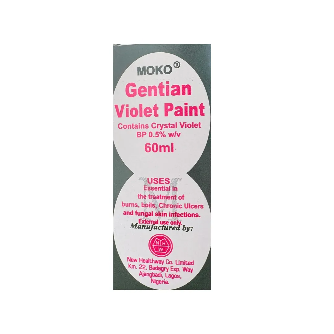 Moko Gentian Violet Paint is a topical antiseptic solution containing gentian violet (crystal violet). It is used on the skin to treat infections and protect wounds from bacteria and fungi.