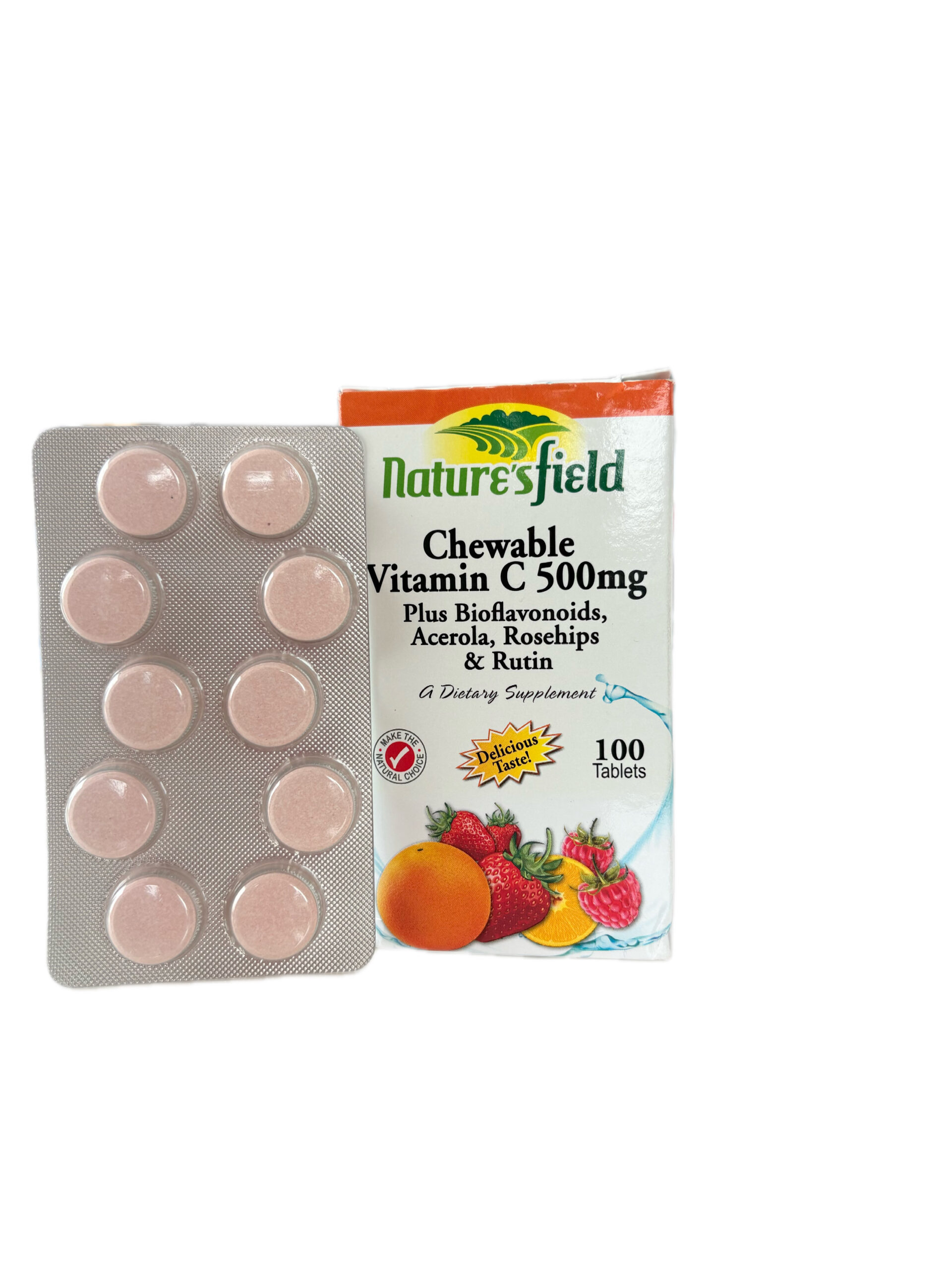 Nature’s Field Chewable Vitamin C 500mg 10 Tablets (Blisters)