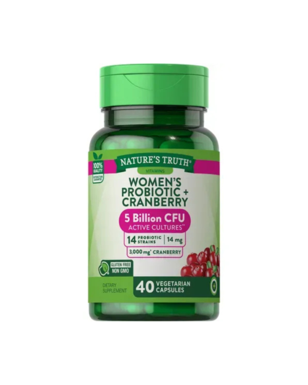 Probiotics are good bacteria naturally found in your digestive tract that support a healthy immune system. This formula features the equivalent of 3,000 mg of fresh cranberries and 5 billion active cultures from 8 probiotic strains per serving making these vegetarian capsules an easy addition to any routine.This unique blend of probiotics and cranberries is specially designed to provide overall digestive health and encourage microflora balance while targeting woman’s wellness.
