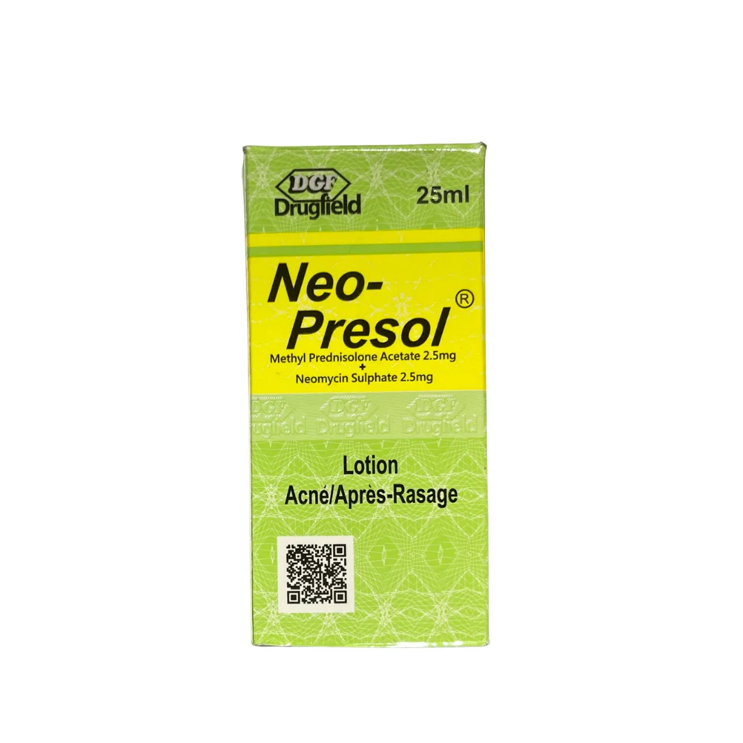 Neo-Presol lotion is mainly used for treating acne, rosacea, dermatitis, and skin irritation, thanks to its triple-action formula combining anti-inflammatory, antibacterial, and keratolytic properties.