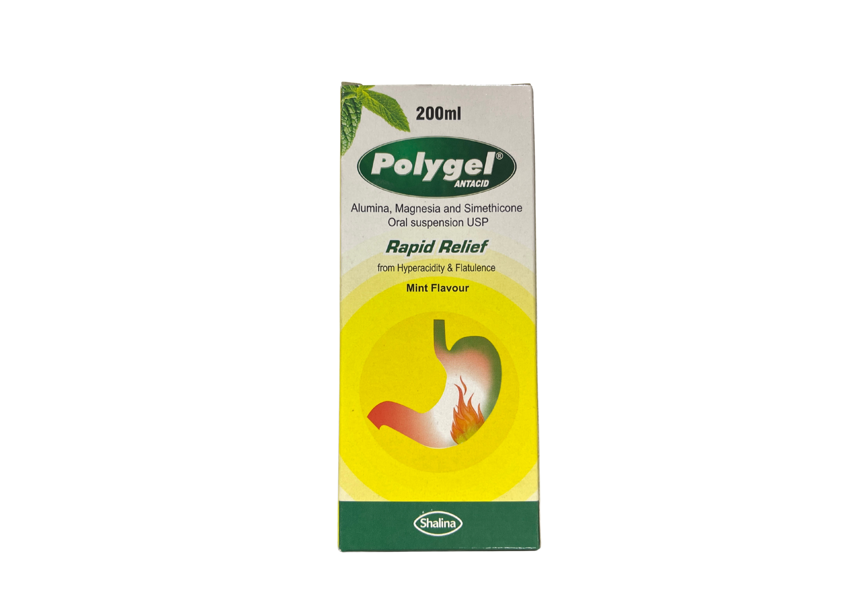 Polygel Antacid provides quick relief from heartburn, indigestion, and stomach discomfort.