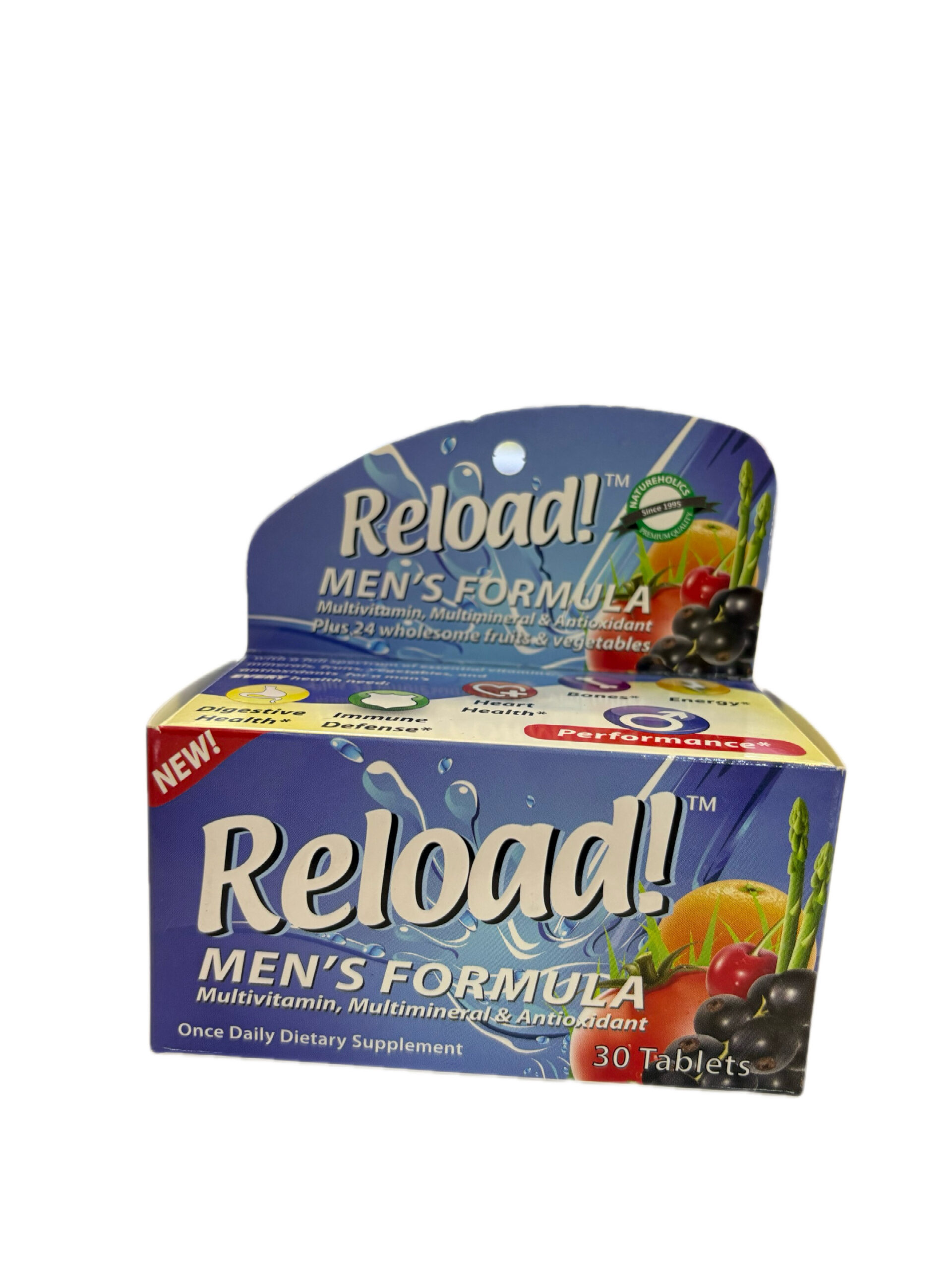 Reload Men’s Multivitamin (30 tablets) is a once-daily multivitamin, multimineral, and antioxidant supplement formulated to support men’s nutritional needs and overall health. It contains essential vitamins, minerals, antioxidants, and blends of fruits and vegetables to help maintain energy, immunity, and general wellbeing.