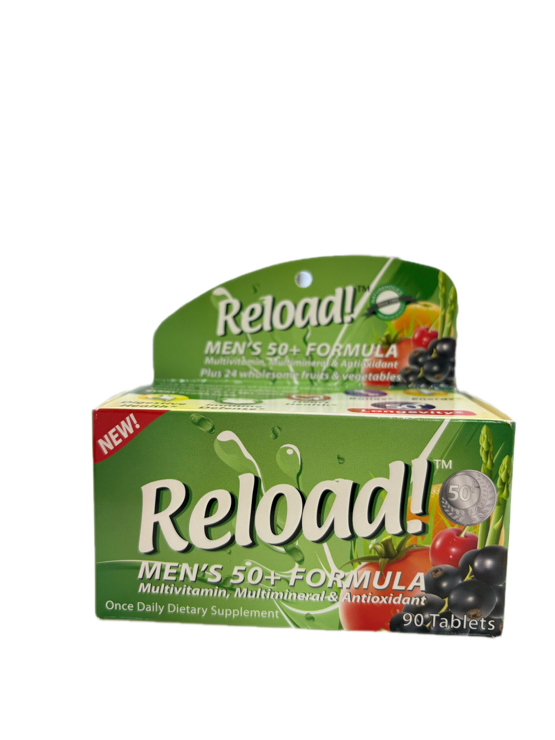 Reload Men’s Multivitamin 50+ (90 tablets) is a once-daily multivitamin, multimineral, and antioxidant supplement specially formulated for men aged 50 years and above. It provides essential nutrients and plant-based antioxidants to support overall health, stamina, and vitality as men age.